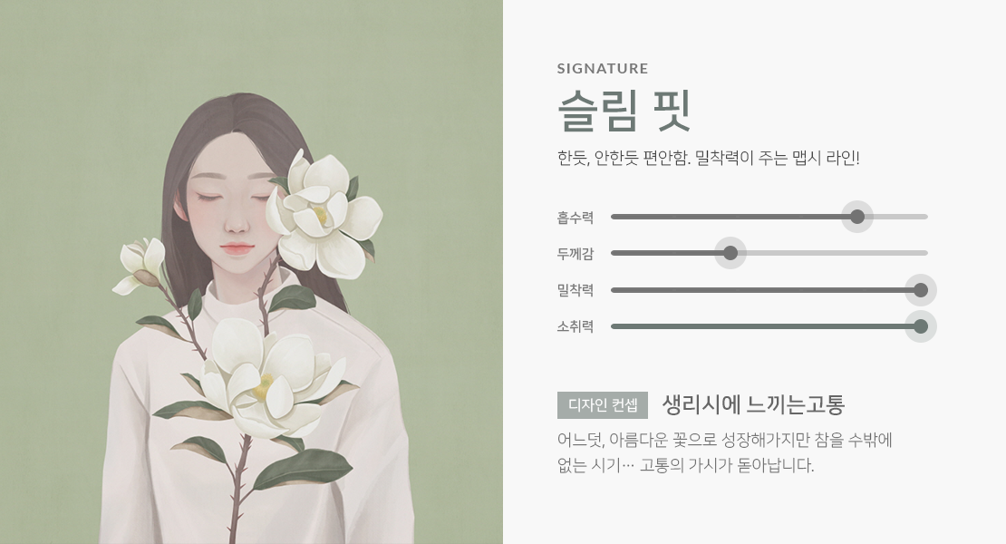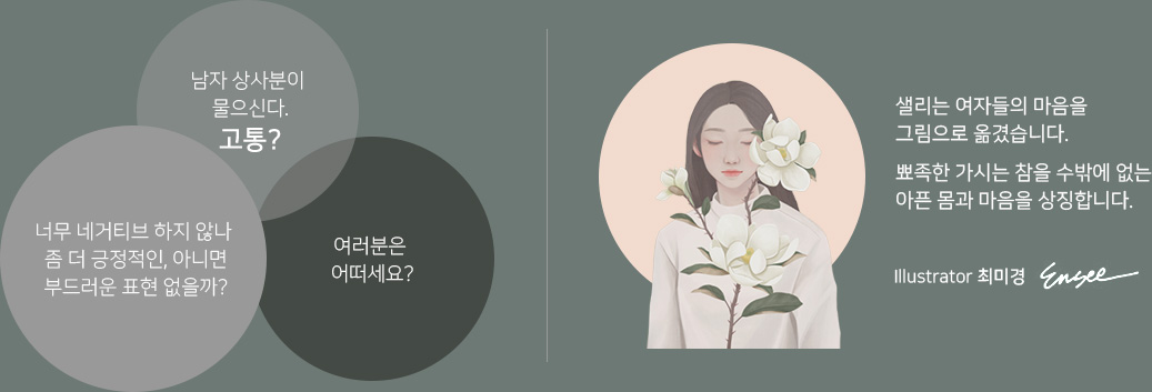 두 여자의 마음이 만나서 샐리의 법칙 생리대를 탄생시켰습니다.