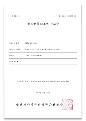 무색소, 무화학 향료,무염소 표백제로 대한민국 식약처(KFDA)에서 승인받은 제품입니다.