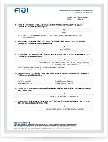 안전성 검사를 매월 시행하고 있습니다. 100% 한국에서 생산 하면서 무포름알데히드, 무형광증백제,